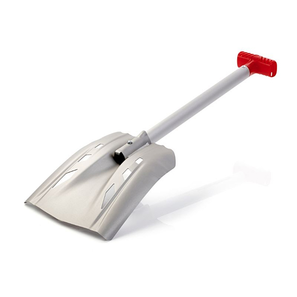 Equipée d'un manche en Aluminium d'une longueur de 43 cm qui se déboîte, la pelle Plume est aussi munie d'un godet en alu anodisé de 24 par 24 cm et présente plusieurs trous destinés à faire passer des cordelettes pour réaliser un amarrage ou, à l’aide d’une paire de skis, un brancard d’urgence.