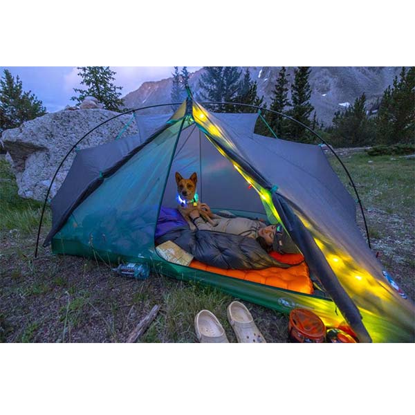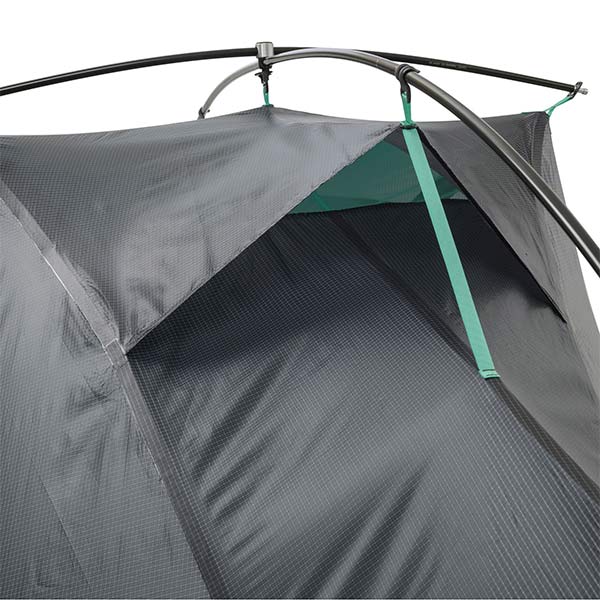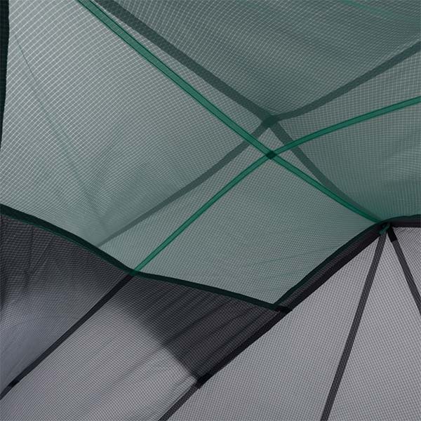 Un seul arceau en aluminium aéronautique DAC Featherlite suffit à ériger l'intégralité de l'abri, ce design minimaliste permet un gain de poids drastique tout en conservant une structure stable face au vent.