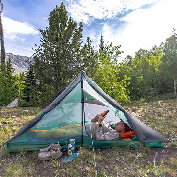 C'est une tente radicalement différente de ce que Big Agnes proposait auparavant : elle n'utilise pas d'arceaux classiques, mais vos bâtons de randonnée pour tenir debout, c'est une pure merveille d'ingénierie.