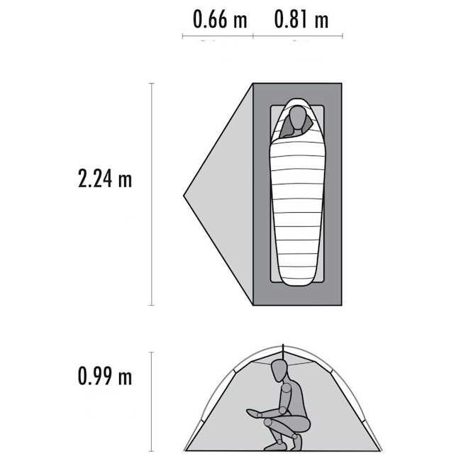 - Matériaux :           Double toit : Nylon Ripstop Solution-dyed 20D, SIL/PU - Colonne d’eau : 3000 mm