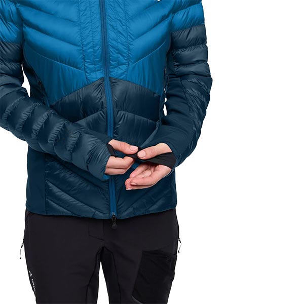 Les dessous des manches et les côtés en Storm Fleece sont déperlants et coupe-vent tout en assurant une excellente respirabilité. La capuche enveloppante et le col montant ainsi que les ouvertures pour les pouces protègent efficacement des entrées d’air froid. La Women's Sesvenna Pro est dotée de deux poches chauffe-mains zippées compatibles avec le port d'un sac à dos ou d’un harnais. Son zip frontal est à double-curseur avec rabat intérieur. La coupe ajustée se glisse parfaitement sous une hardshell et permet le port du harnais avec aisance.