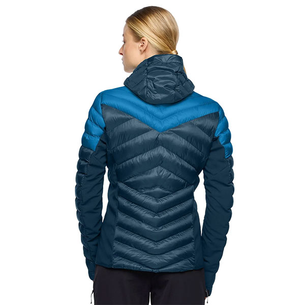 La Women's Sesvenna Pro est une veste hybride légère et très chaude qui résiste à l’humidité et au vent. Sa fabrication est éco-responsable et principalement composée de matériaux recyclés.